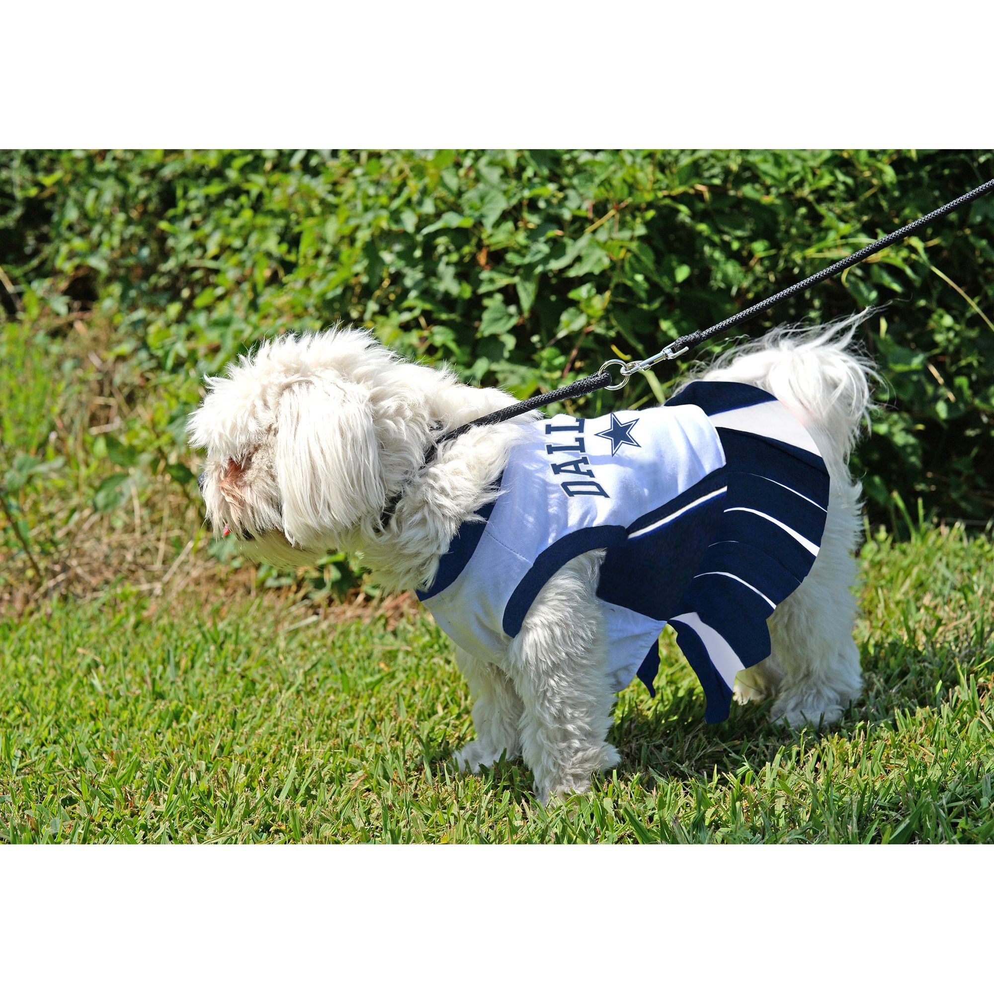 Have your favorite furry friend join in on the Dallas Cowboys fandom and visit NFL Shop for Dallas Cowboys dog jerseys and pet gear. Description Let your four-legged mascot show some love for his favorite football team with Our Dallas Cowboys Dog Jersey. Dog t-shirt with Dallas Cowboys colors and logo.